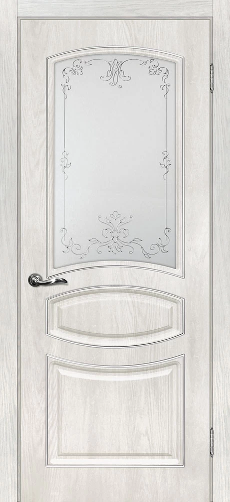 Качественная Межкомнатная дверь Сиена-5 Дуб жемчужный продается по цене 11 797 руб. за полотно. Доступные размеры 550x1900, 600x1900, 600x2000, 700x2000, 800x2000, 900x2000. Так же в наличии большой выбор комплектующих к данной модели, подходящих по цвету и фактуре.
