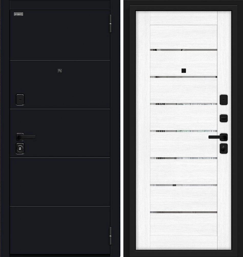 Надежная входная Дверь Браво Прайд Total Black/Snow Melinga премиум класса по цене 39 549 руб. Большая толщина стали защитит от проникновения в ваш дом, квартиру или коттедж. Используется очень качественная фурнитура: замки, цилиндры, ручки, защелки. Покрытие и отделка двери изготовлено под внимательным контролем производителя. Дверь имеет долгий срок службы и гарантию.
