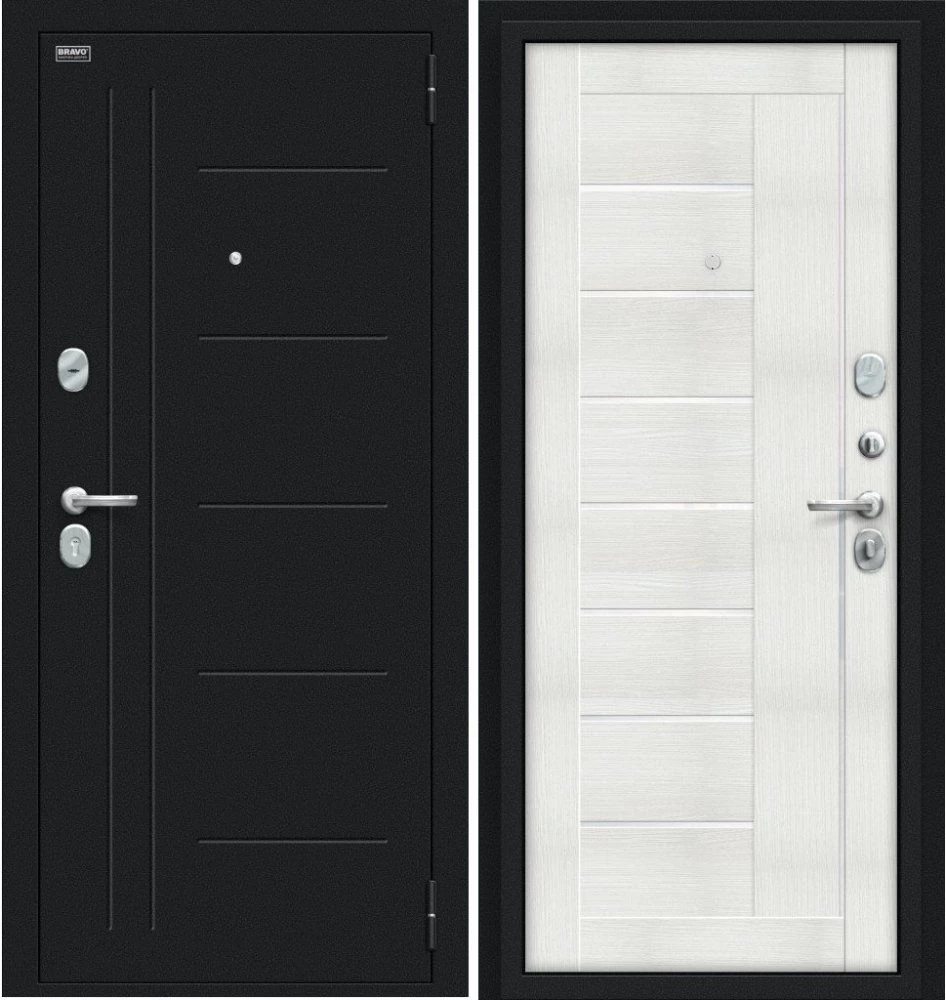 Надежная входная Дверь Браво Проф Букле черное/Bianco Veralinga премиум класса по цене 32 649 руб. Большая толщина стали защитит от проникновения в ваш дом, квартиру или коттедж. Используется очень качественная фурнитура: замки, цилиндры, ручки, защелки. Покрытие и отделка двери изготовлено под внимательным контролем производителя. Дверь имеет долгий срок службы и гарантию.