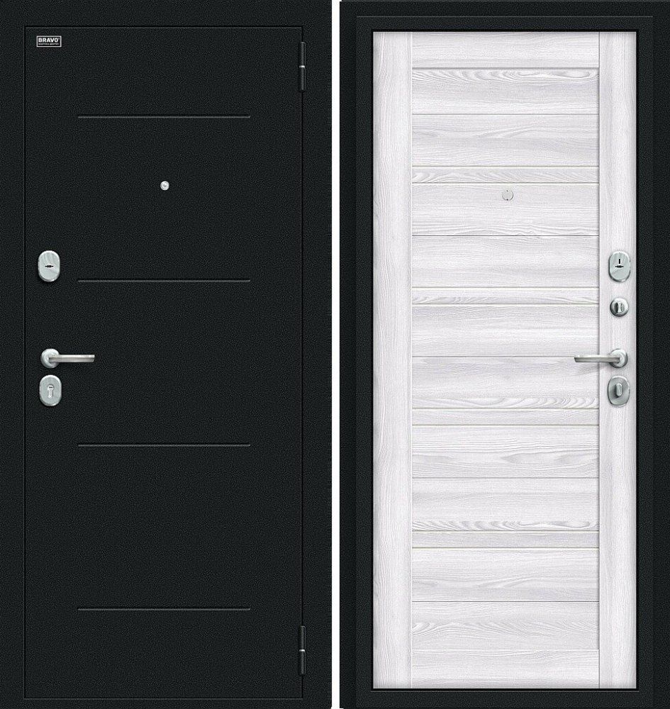 Надежная входная Дверь Браво Сити Kale Букле черное/Riviera Ice премиум класса по цене 35 199 руб. Большая толщина стали защитит от проникновения в ваш дом, квартиру или коттедж. Используется очень качественная фурнитура: замки, цилиндры, ручки, защелки. Покрытие и отделка двери изготовлено под внимательным контролем производителя. Дверь имеет долгий срок службы и гарантию.