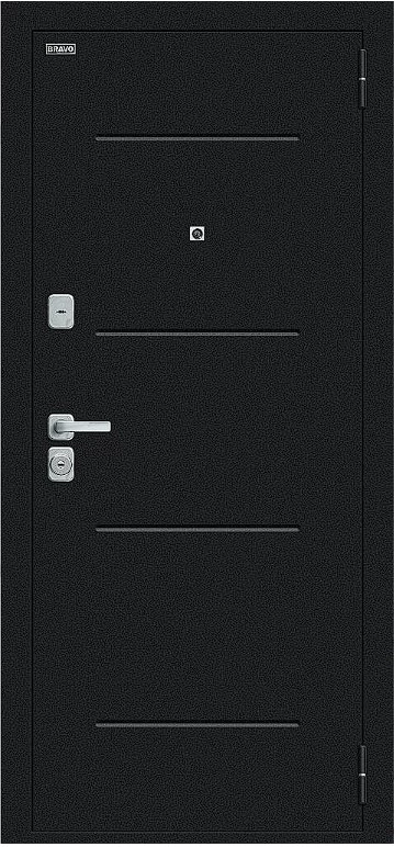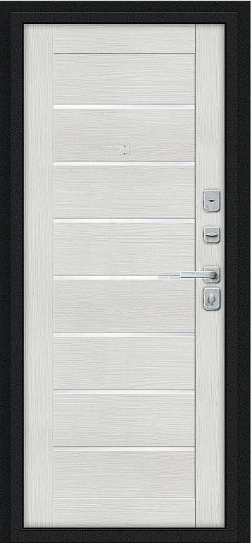 Надежная входная Дверь Браво Техно/BChrome Букле черное/Bianco Melinga премиум класса по цене 32 799 руб. Большая толщина стали защитит от проникновения в ваш дом, квартиру или коттедж. Используется очень качественная фурнитура: замки, цилиндры, ручки, защелки. Покрытие и отделка двери изготовлено под внимательным контролем производителя. Дверь имеет долгий срок службы и гарантию.