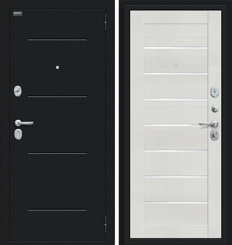 Надежная входная Дверь Браво Техно Букле черное/Bianco Veralinga премиум класса по цене 31 049 руб. Большая толщина стали защитит от проникновения в ваш дом, квартиру или коттедж. Используется очень качественная фурнитура: замки, цилиндры, ручки, защелки. Покрытие и отделка двери изготовлено под внимательным контролем производителя. Дверь имеет долгий срок службы и гарантию.