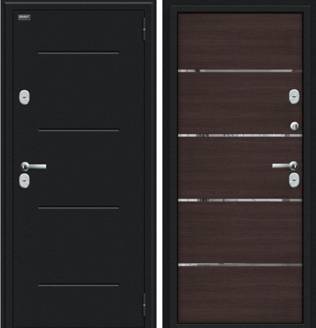 Надежная входная Дверь Браво Thermo Лайн Букле черное/Wenge Veralinga премиум класса по цене 47 549 руб. Большая толщина стали защитит от проникновения в ваш дом, квартиру или коттедж. Используется очень качественная фурнитура: замки, цилиндры, ручки, защелки. Покрытие и отделка двери изготовлено под внимательным контролем производителя. Дверь имеет долгий срок службы и гарантию.