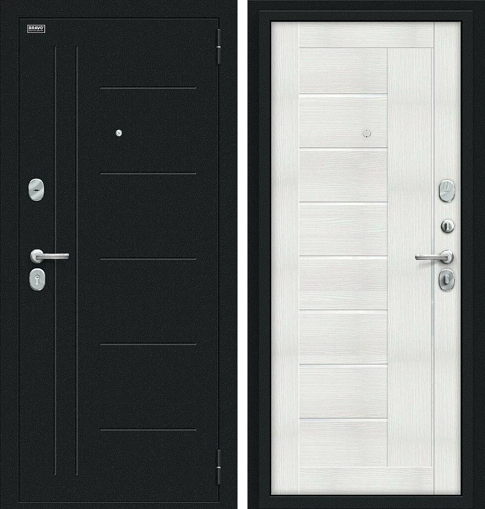 Надежная входная Входная дверь Проф Букле черное/Bianco Veralinga BR4547 премиум класса по цене 33 181 руб. Большая толщина стали защитит от проникновения в ваш дом, квартиру или коттедж. Используется очень качественная фурнитура: замки, цилиндры, ручки, защелки. Покрытие и отделка двери изготовлено под внимательным контролем производителя. Дверь имеет долгий срок службы и гарантию.