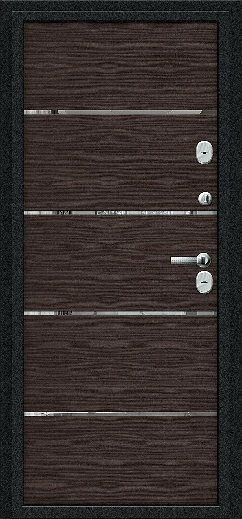 Надежная входная Входная дверь Thermo Лайн Букле черное/Wenge Veralinga BR4579 премиум класса по цене 48 340 руб. Большая толщина стали защитит от проникновения в ваш дом, квартиру или коттедж. Используется очень качественная фурнитура: замки, цилиндры, ручки, защелки. Покрытие и отделка двери изготовлено под внимательным контролем производителя. Дверь имеет долгий срок службы и гарантию.