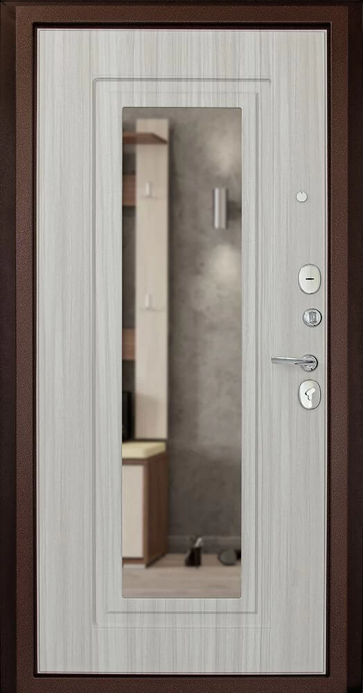 Надежная входная Дверь ДК Рубикон зеркало премиум класса по цене 32 049 руб. Большая толщина стали защитит от проникновения в ваш дом, квартиру или коттедж. Используется очень качественная фурнитура: замки, цилиндры, ручки, защелки. Покрытие и отделка двери изготовлено под внимательным контролем производителя. Дверь имеет долгий срок службы и гарантию.