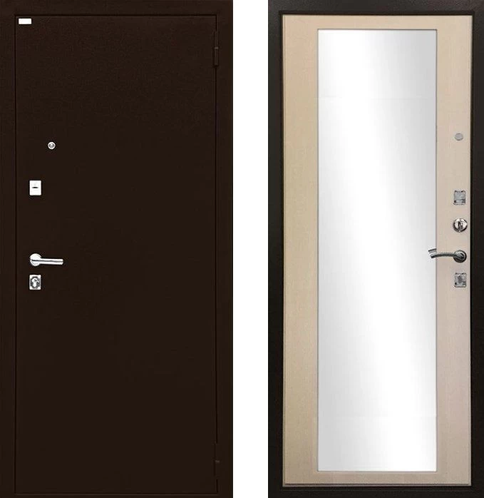 Надежная входная Дверь Ратибор Люкс Зеркало Экодуб премиум класса по цене 30 799 руб. Большая толщина стали защитит от проникновения в ваш дом, квартиру или коттедж. Используется очень качественная фурнитура: замки, цилиндры, ручки, защелки. Покрытие и отделка двери изготовлено под внимательным контролем производителя. Дверь имеет долгий срок службы и гарантию.
