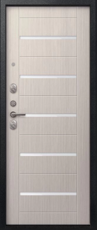 Надежная входная Дверь V-05 Черный муар - Лиственница светлая премиум класса по цене 41 699 руб. Большая толщина стали защитит от проникновения в ваш дом, квартиру или коттедж. Используется очень качественная фурнитура: замки, цилиндры, ручки, защелки. Покрытие и отделка двери изготовлено под внимательным контролем производителя. Дверь имеет долгий срок службы и гарантию.