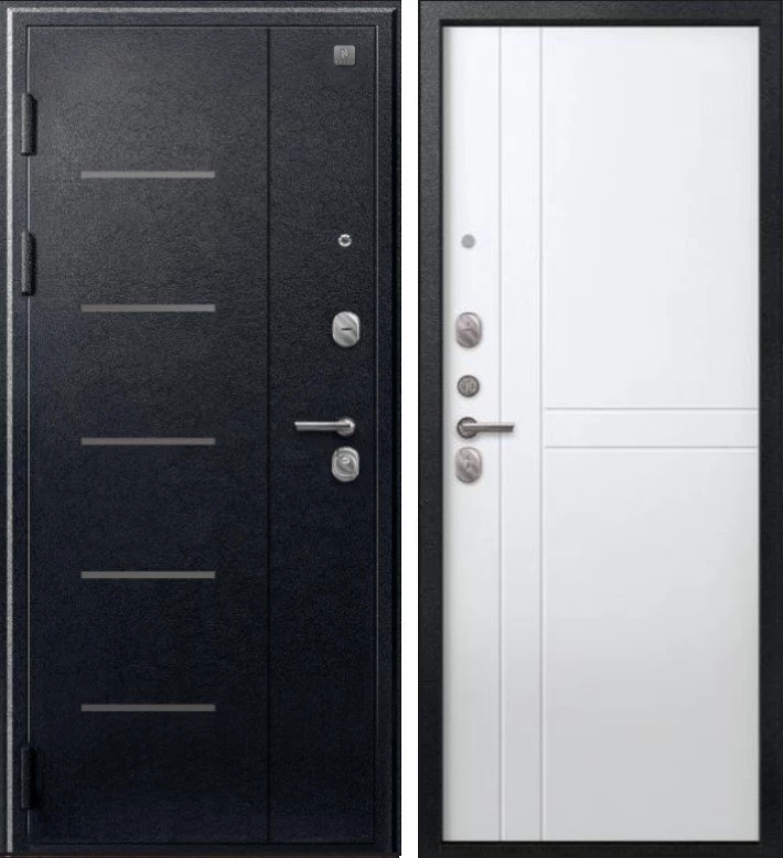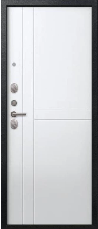 Надежная входная Дверь V-06 Черный муар - Белый премиум класса по цене 38 549 руб. Большая толщина стали защитит от проникновения в ваш дом, квартиру или коттедж. Используется очень качественная фурнитура: замки, цилиндры, ручки, защелки. Покрытие и отделка двери изготовлено под внимательным контролем производителя. Дверь имеет долгий срок службы и гарантию.